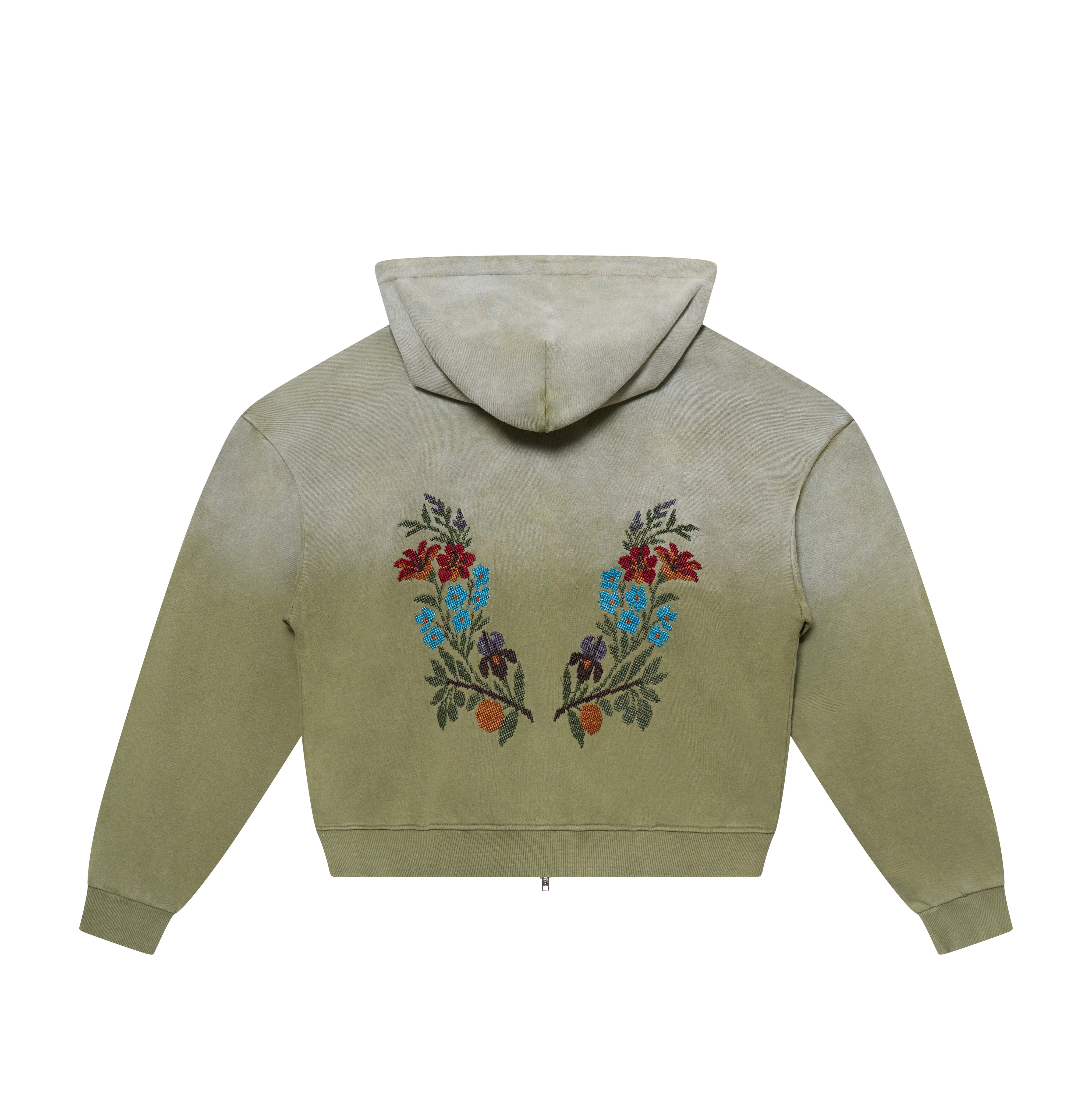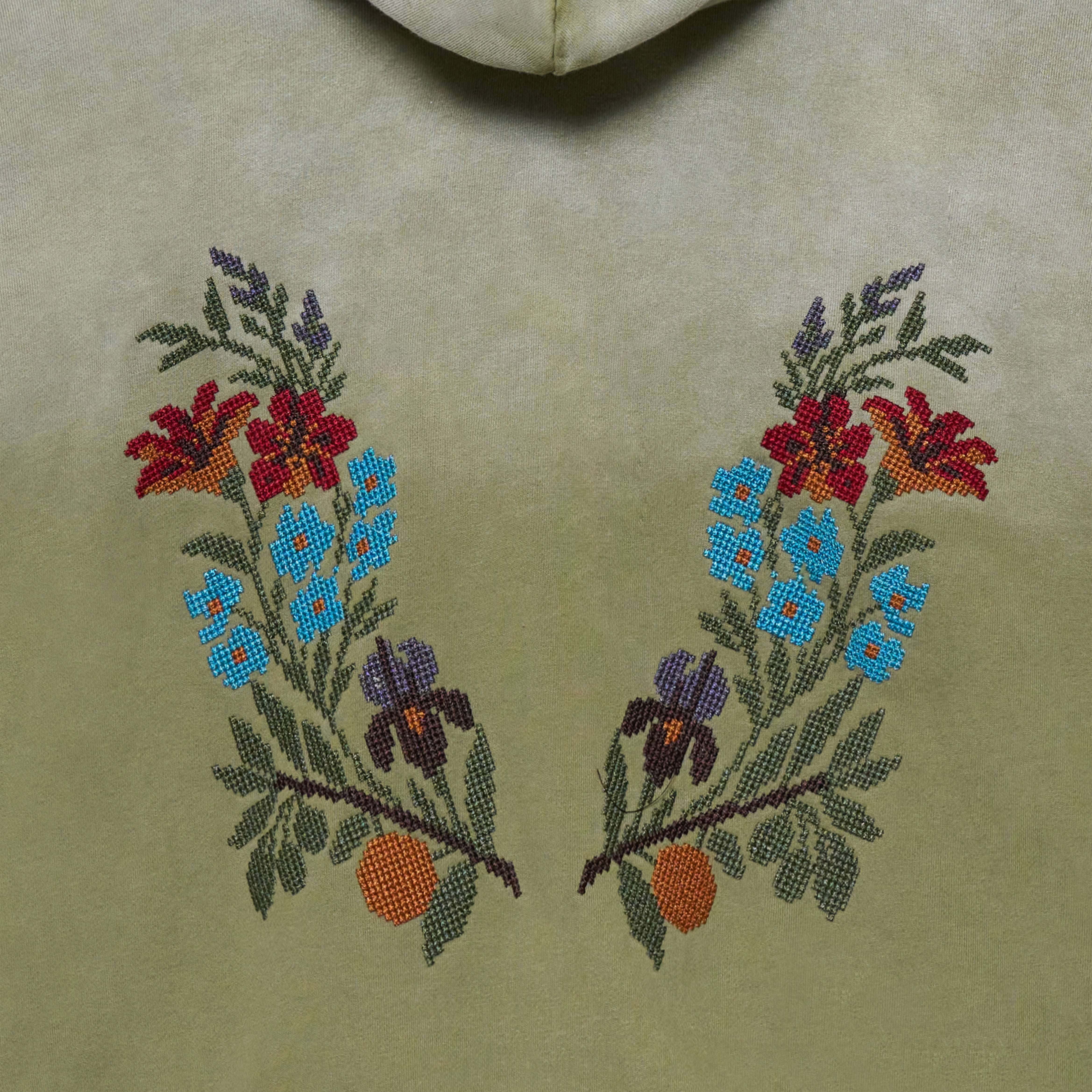 - Palestinian tatreez-styled embroidery on back featuring traditional motifs